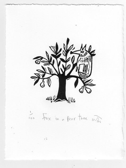Fox in a Pear Tree Linocut Art Print