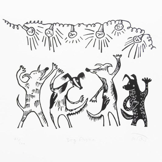 Dog Disco Lino Cut Art Print