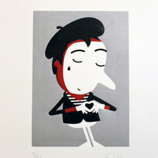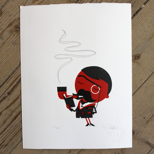Spencer Wilson is an illustrator, artist and printmaker. Her creates his original limited edition relief letterpress prints from metal plates featuring his character designs that he prints using an etching press with oil based inks.