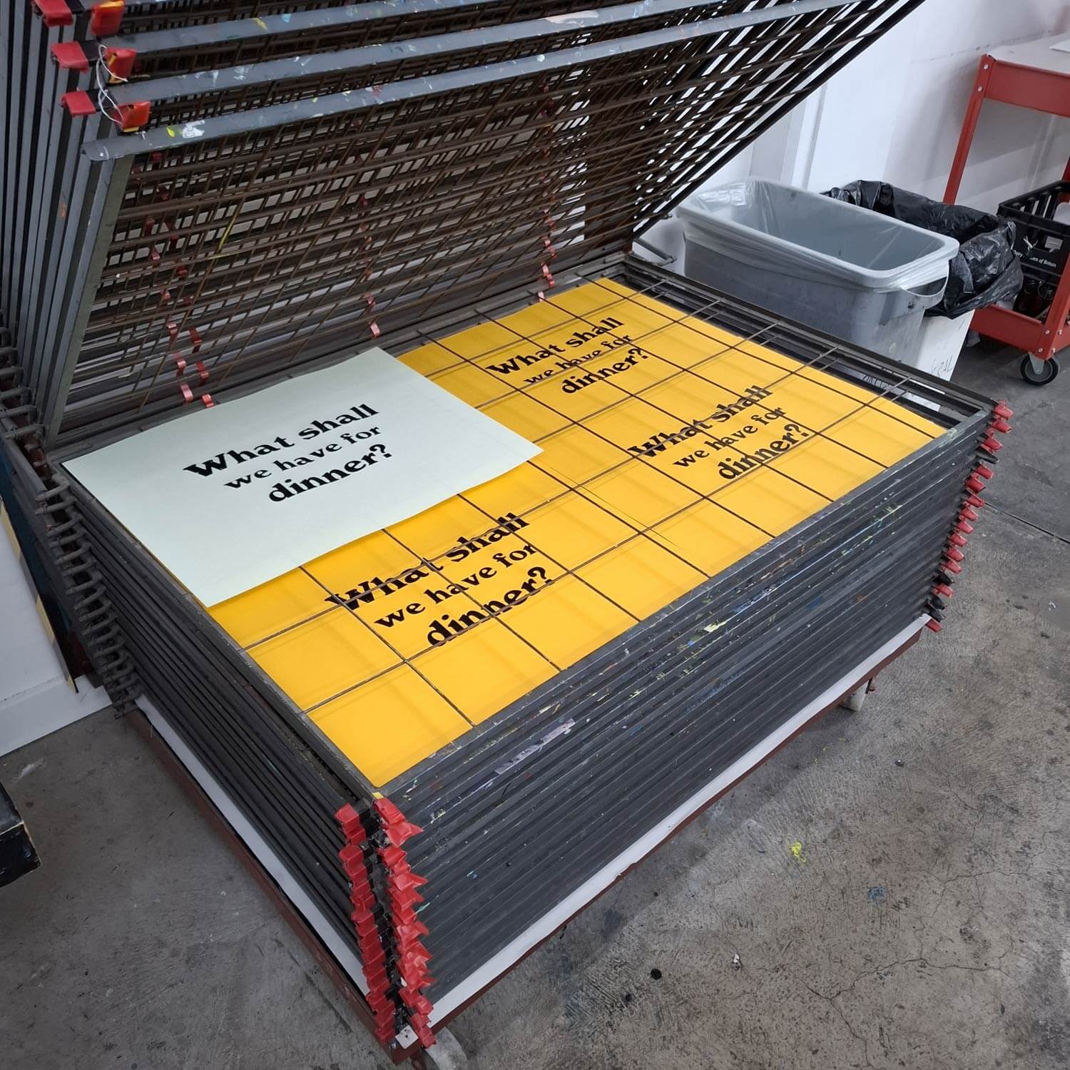"This is the screen printed version of my very popular Dinner letterpress poster. A humorous print to bring joy at the dinner table, definitely joy and not anger. Cooking is love! The Dinner poster was the last thing I printed in the Letterpress studios on my MA so it had to be worthwhile!