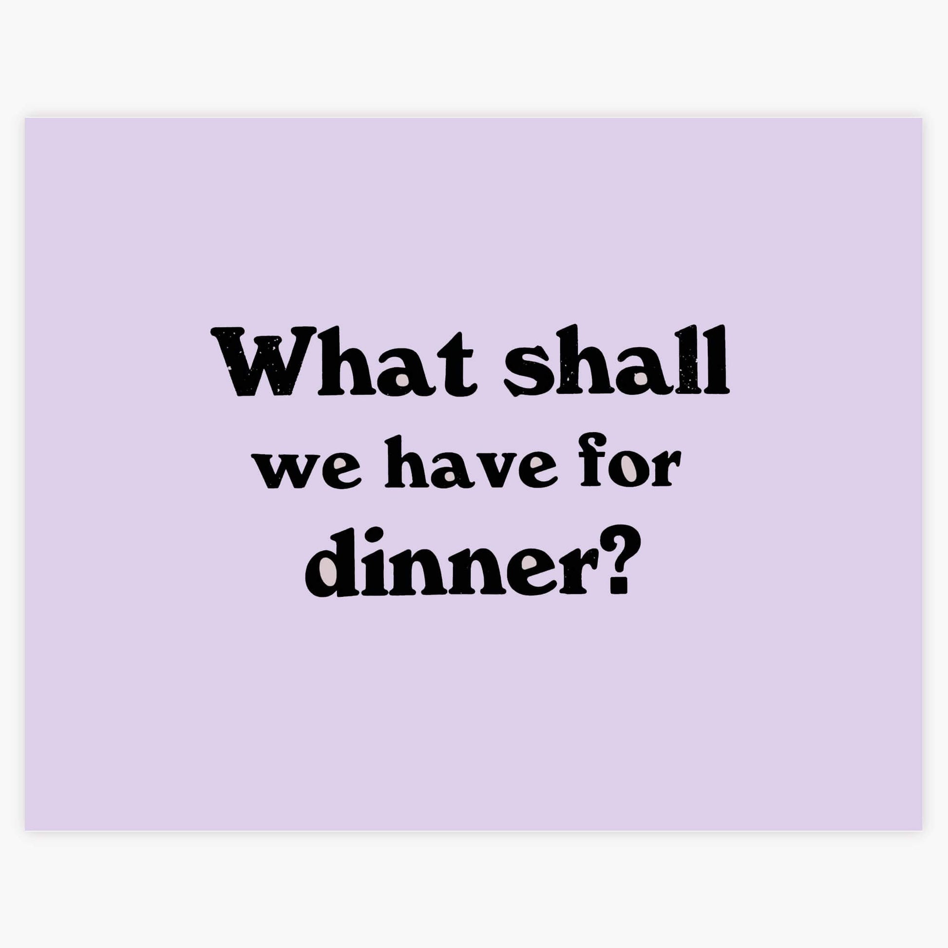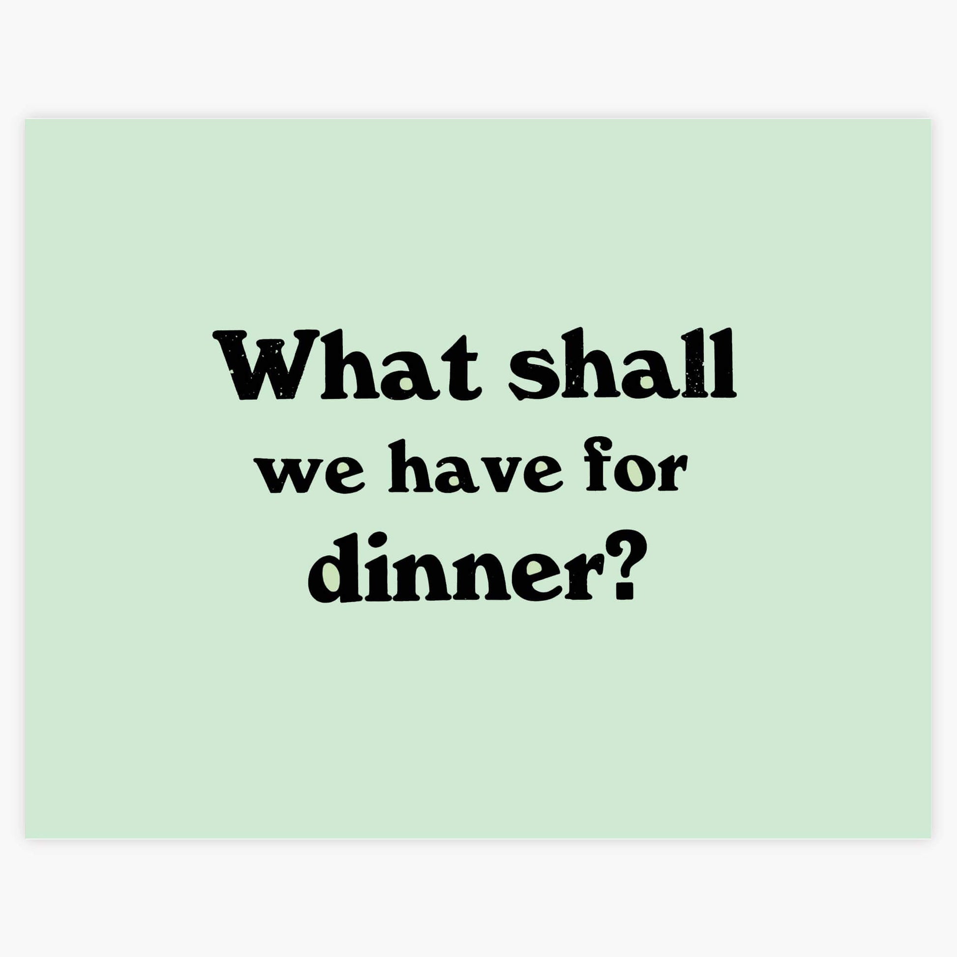 'What Shall We Have for Dinner' screen printed poster by Fiona Hamilton.